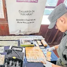 Al momento de la inspección, los funcionarios detectaron una gran cantidad de billetes de distintas denominaciones y una pistola calibre 9 mm, la cual poseía la numeración limada y 12 municiones. Ante esa situación, los gendarmes contabilizaron un total de 33.750 dólares estadounidenses y 287.000 pesos.